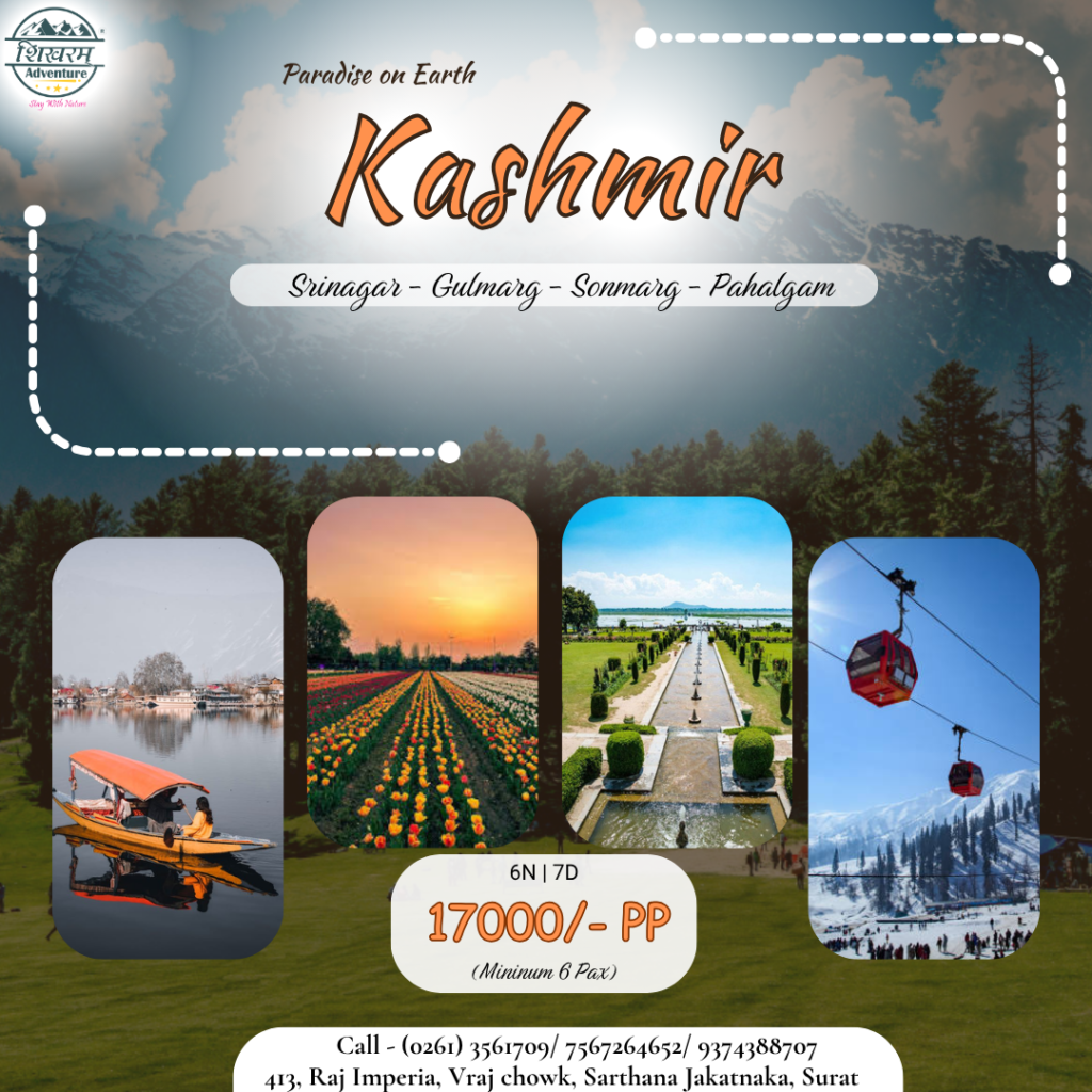 - 3N Srinagar, 2 N Pahalgam, 1N houseboat + Sikara Ride